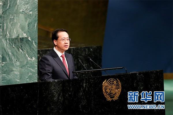 3月23日,在位于紐約的聯(lián)合國總部,中國常駐聯(lián)合國代表馬朝旭在聯(lián)合國大會“國際水行動(dòng)十年”計(jì)劃高級別活動(dòng)上發(fā)言,闡述中國水策略。新華社記者 李木子 攝