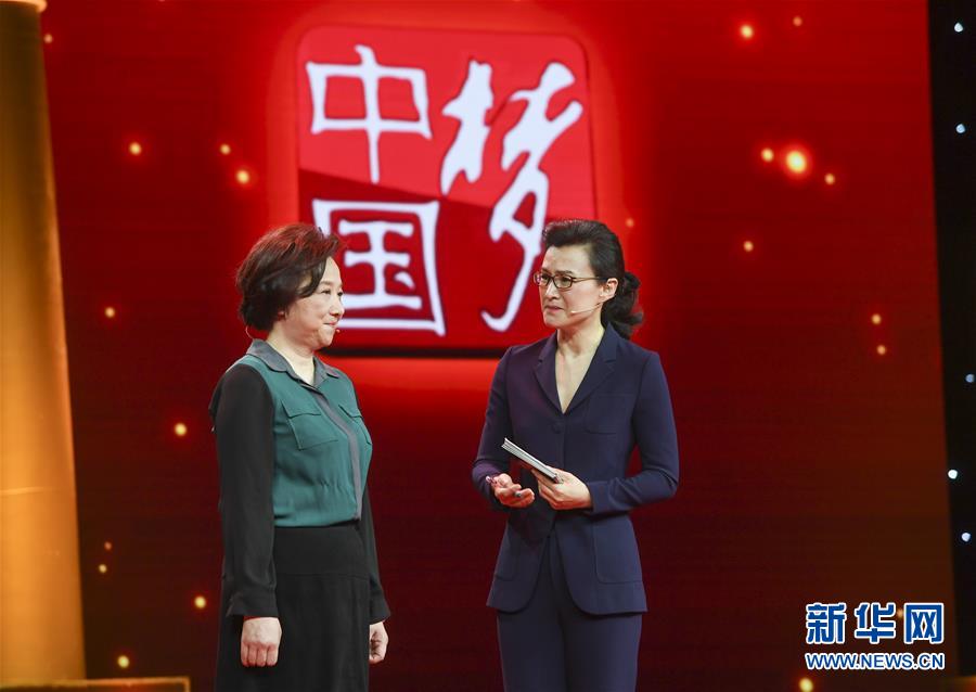 鐘揚(yáng)的妻子張曉艷(左)在“時(shí)代楷?!卑l(fā)布儀式現(xiàn)場(3月26日攝)。新華社發(fā)