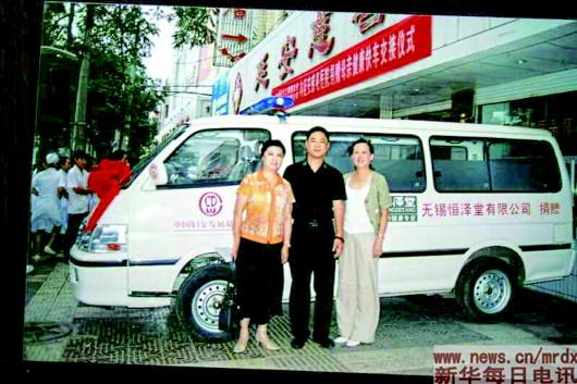 ▲2007年4月,馮翊向延安慈善醫院捐贈“母親健康快車”。