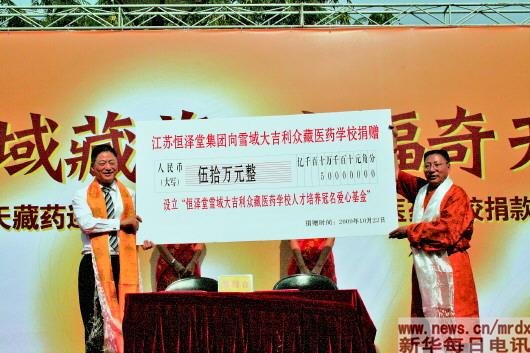 ▲2009年10月,馮翊向某學校捐贈50萬元。受訪者供圖