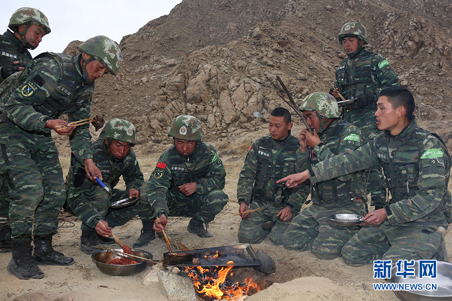 這是特戰(zhàn)隊員正在進行小組野炊。新華網(wǎng)發(fā) 余文彬 攝