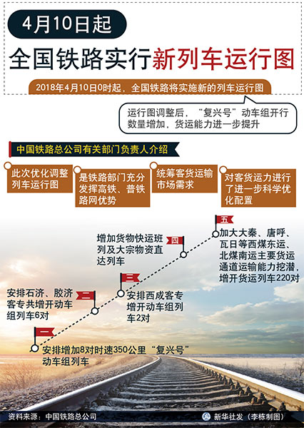 圖表:4月10日起全國鐵路實(shí)行新列車運(yùn)行圖 新華社發(fā) 李棟 制圖