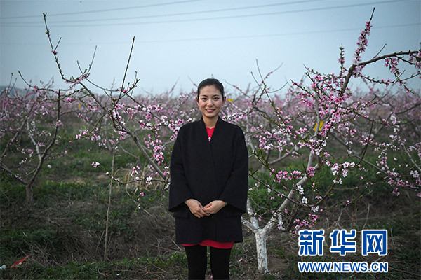 宋姍姍在泗陽縣南劉集鄉趙陳村“桃花源記”項目桃林前留影(3月31日攝)。新華社記者 季春鵬 攝
