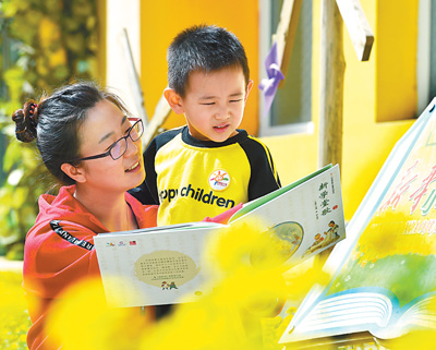4月6日,青年志愿者指導(dǎo)小朋友讀書。清明期間,河北石家莊市橋西區(qū)開展“共享圖書 快樂閱讀”活動,鼓勵孩子養(yǎng)成閱讀習(xí)慣。記者 史自強 攝