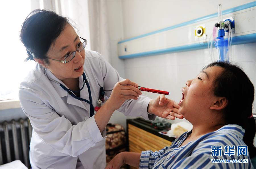 乞國艷在病房查看患者病情(2016年5月10日攝)。新華社記者王曉 攝