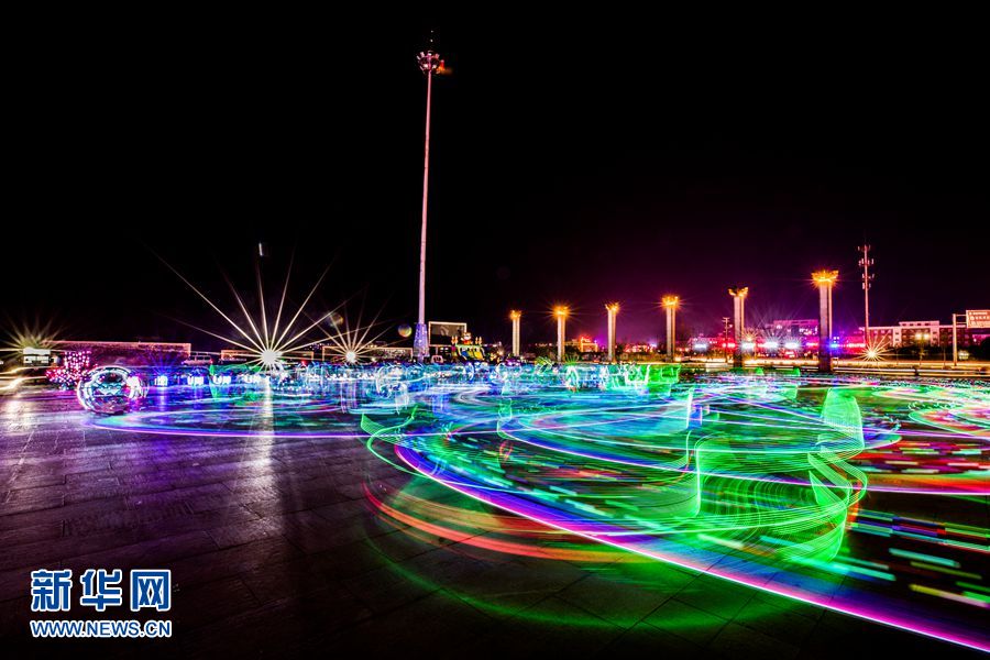 夜幕中的三賢廣場,孩子們的玩具車留下五光十色的軌跡。中國雄安官網記者 王永康 攝