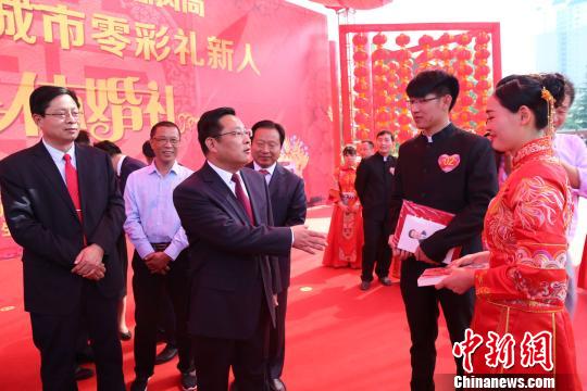 18對新人以“零彩禮”集體婚禮的形式步入幸福的婚姻殿堂,致敬青春?!√J柯柯 攝