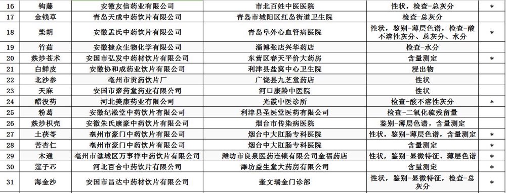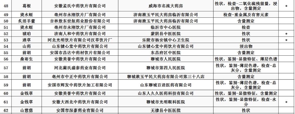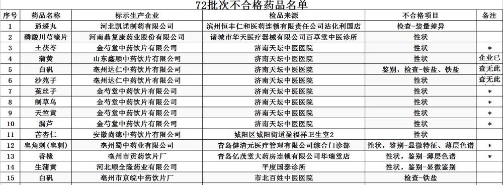 經濱州市食品藥品檢驗檢測中心等14家藥品檢驗機構檢驗,標示為河北凱諾制藥有限公司等2家企業生產的2批次藥品,標示為金芍堂中藥飲片有限公司等47家企業生產的70批次中藥飲片不合格。