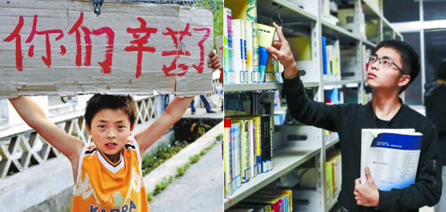 現場有人小聲說:“這是從災區走出來的孩子。”