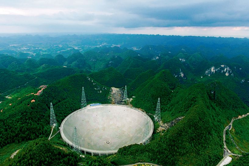 ▲ 500米口徑球面射電望遠鏡(FAST)于2016年9月25日落成啟用(歐東衢攝/本刊)