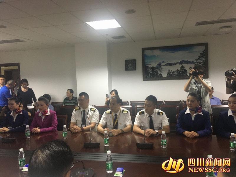 5月14晚8點(diǎn)30分,四川新聞網(wǎng)記者在成都市第一人民醫(yī)院見到了四川航空公司3U8633機(jī)組機(jī)長(zhǎng)劉傳健及機(jī)組成員,記者發(fā)現(xiàn)機(jī)組成員狀態(tài)良好。在代表機(jī)組向媒體介紹相關(guān)情況時(shí),機(jī)長(zhǎng)劉傳健聲音洪亮,精神飽滿。劉傳健說(shuō),“感謝社會(huì)各界對(duì)機(jī)組的關(guān)心和厚愛。今天發(fā)生的這件事應(yīng)該是很罕見的,但是經(jīng)過(guò)機(jī)組的共同努力,做到人機(jī)安全,保障了我們所有的旅客安全,我和我的機(jī)組是非常榮幸的。”