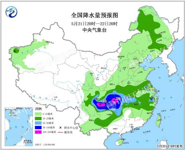 今明天,我國南方地區再遭強降雨。中央氣象臺預計,西南地區東部有一次強降雨過程,四川、重慶、湖北西南部、貴州北部等地有暴雨,局地大暴雨并伴有短時強降水、雷暴大風等強對流天氣。過程最強時段為21日夜間至22日白天。為此,中央氣象臺5月21日06時繼續發布暴雨藍色預警。