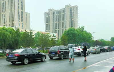 天氣陰沉,不一會兒就飄起雨來,攬客人從車里拿出傘來,走到地鐵站南側的公交站處,開始游說避雨的乘客:“十塊錢馬上就走了,下著雨你在這兒淋著圖啥?”招攬到一個去往固安鳳凰城的男子,司機迅速將車開來,車中已有兩名乘客在等待,接上這最后一名乘客后,這輛冀R牌照的白色小轎車迅速駛離。