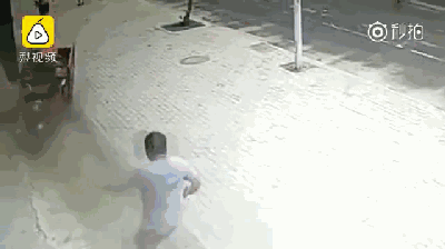 5月19日,河南蘭考縣南彰鎮一家店門口,一輛三輪車飛速沖來,一個小孩掛在車把上嚎啕大哭...