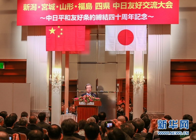 5月22日,日本新潟,中國駐日本大使程永華在日本4縣中日友好交流大會上發(fā)言。新華網(wǎng)發(fā) 馬曹冉 攝