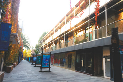 從美術館后街77號院往東南方向走約7公里,就來到了朝陽中心商務區。這里,入目皆是鱗次櫛比的大廈和高檔商場。不過,商務區東南角保留了一隅時代的印記,那里還存有原工廠建筑的外立面風格,甚至連窗外的爬藤都未曾驚擾。