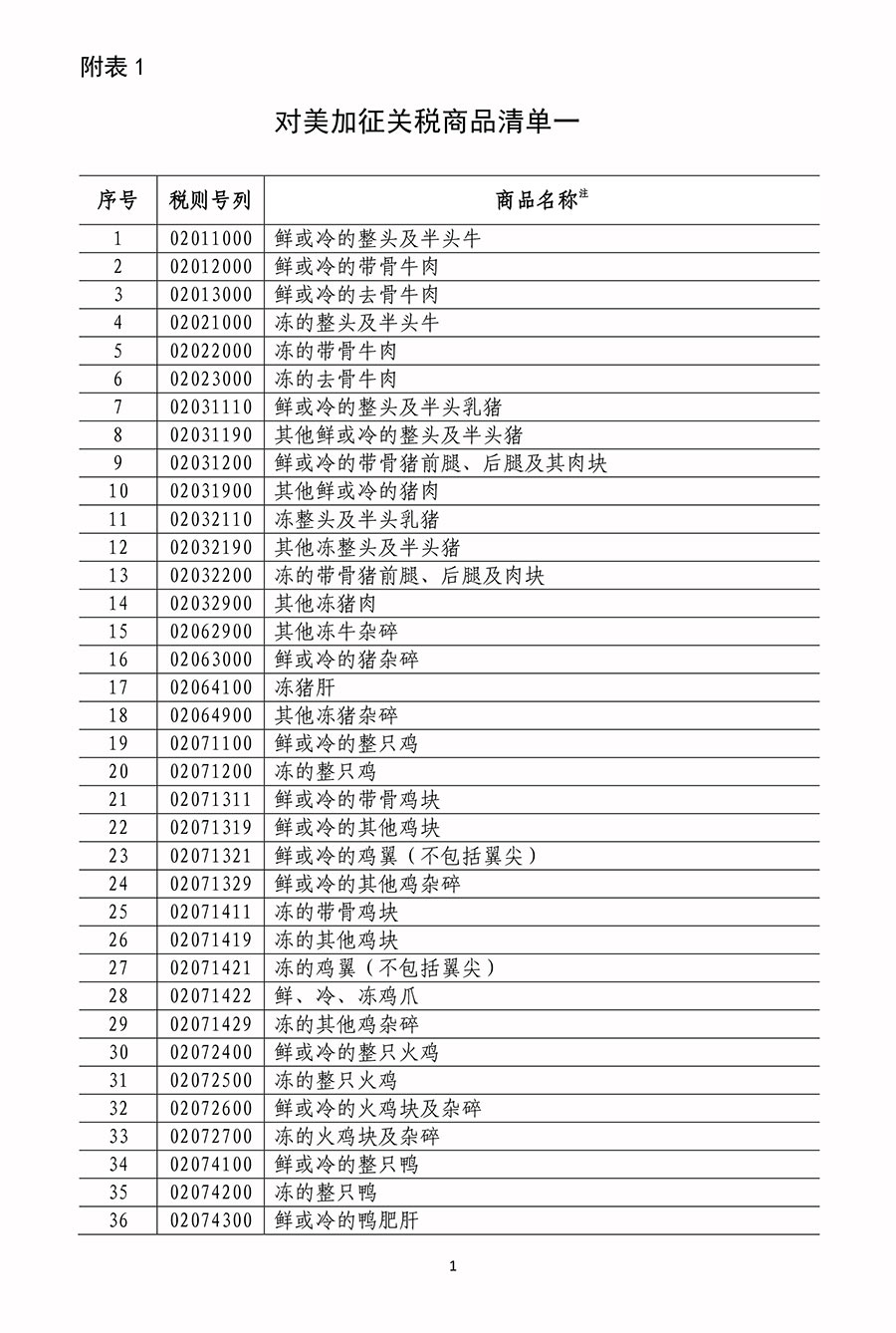 一、對(duì)農(nóng)產(chǎn)品、汽車(chē)、水產(chǎn)品等545項(xiàng)商品,自2018年7月6日起實(shí)施加征關(guān)稅,具體商品范圍見(jiàn)附表1。