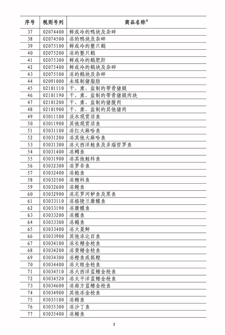 附表2 對(duì)美加征關(guān)稅商品清單二
