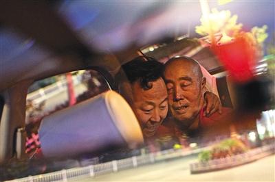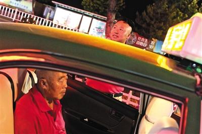 為了不引起乘客反感,李金柱盡量與他們聊些開心的話題,老父親坐在車上也一直觀察著乘客的表情。圖片來源:新京報(bào)