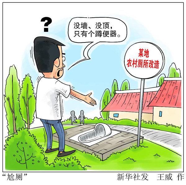 但記者調查發現,中央高度重視并不斷出臺相關方案及措施的農村改廁,在一些地方卻“變了味兒”,出現了半吊子的“尬廁”——沒墻、沒頂,只有個蹲便器。