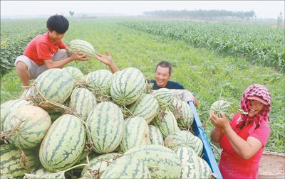 他們正忙著摘瓜、運(yùn)瓜、賣瓜