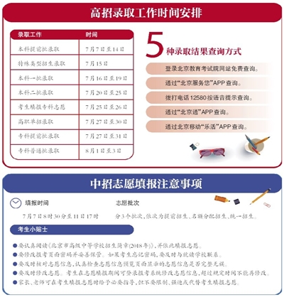 今天,北京2018年高招錄取和中招志愿填報(bào)正式啟動。今年高校在京招生實(shí)行計(jì)算機(jī)遠(yuǎn)程網(wǎng)上錄取,考生可通過5種方式查詢錄取結(jié)果。同時(shí),今年北京中招志愿填報(bào)分為3個(gè)批次,共設(shè)置24個(gè)志愿。