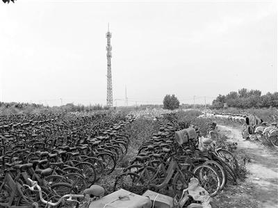 農田中堆放數萬輛二手共享單車