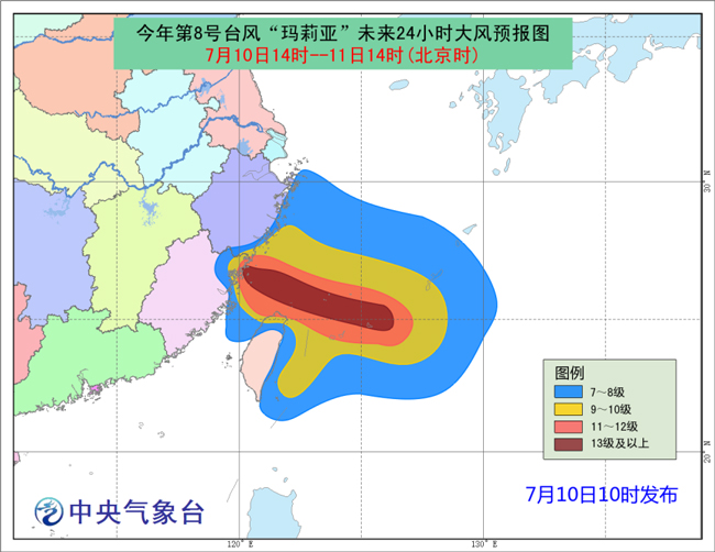 中央氣象臺10日10時發(fā)布臺風紅色預警: