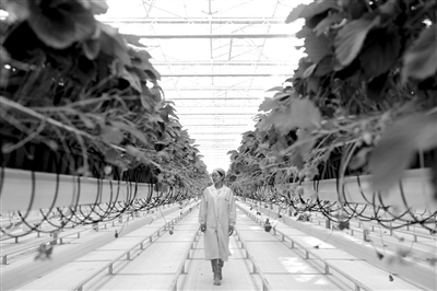 創(chuàng)新發(fā)展不僅停留在工業(yè)層面,2016年9月,海升集團(tuán)投資建設(shè)的5萬平方米現(xiàn)代智能玻璃溫室草莓栽培項(xiàng)目“草莓星球”正式投入使用。項(xiàng)目采用智能升降溫管理系統(tǒng)、精準(zhǔn)水肥循環(huán)系統(tǒng)和基質(zhì)吊架立體栽培等來自荷蘭的工業(yè)化現(xiàn)代農(nóng)業(yè)生產(chǎn)技術(shù),實(shí)現(xiàn)了溫、光、氣、水、肥的智能精準(zhǔn)控制,草莓實(shí)現(xiàn)了一年9個(gè)月產(chǎn)果,產(chǎn)量較以往提升了3倍以上。