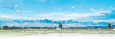 7月8日,安徽省廬江縣泥河鎮境內的國家級稻漁共養示范區內,白鷺在藍天下飛翔。左學長攝(人民視覺)