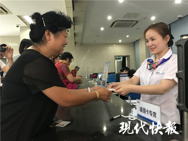 7月11日上午10點,南京市熙南里智匯營業廳,市民周萍站到達一個特殊的窗口—— " 誠信卡專席"。在這里,她持有的市民卡將進行升級,變身"市民誠信卡"。