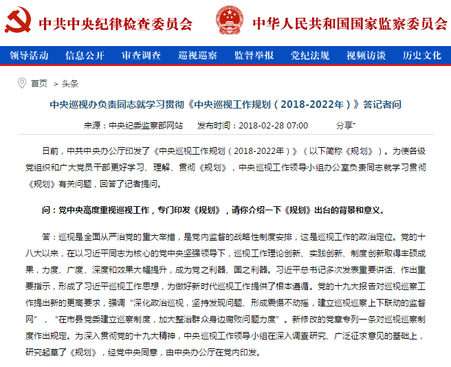 目前,十九屆中央第一輪巡視已進(jìn)入反饋階段。黨的十九大以來,中央巡視在堅(jiān)持中深化,在深化中發(fā)展,作出新部署、提出新要求、進(jìn)行新探索。新時(shí)代巡視利劍越擦越亮,推動(dòng)全面從嚴(yán)治黨向縱深發(fā)展。我們梳理了十九屆中央首輪巡視的7個(gè)“第一次”,一起來看看吧。