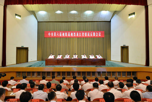 圖為中央巡視工作領(lǐng)導(dǎo)小組成員楊曉超主持召開向黑龍江省委書記張慶偉的反饋會(huì)議,出席巡視黑龍江省情況反饋會(huì)議,對抓好巡視整改工作提出要求。