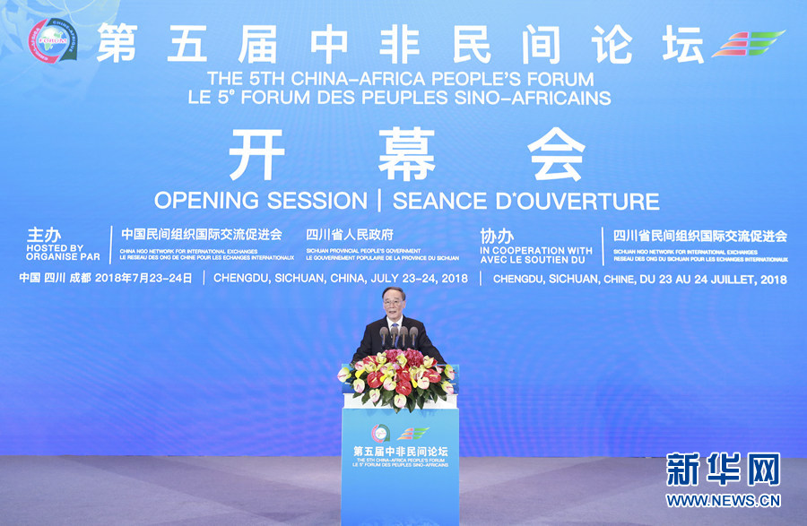 7月23日,第五屆中非民間論壇在成都開幕,國家副主席王岐山出席開幕會并致辭。 新華社記者丁海濤 攝