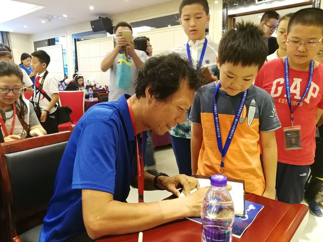 北京天文館館長(zhǎng)朱進(jìn)為小天文愛(ài)好者簽名留念(喻菲攝)