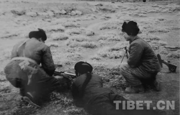 圖為西藏文工團(tuán)老照片:女文工隊(duì)員也很喜愛(ài)射擊 圖片由王勉之提供