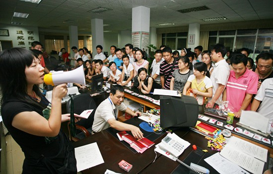 2008年8月8日早晨,湖南省常德市武陵區政務中心婚姻登記處,上百對前來辦理婚姻登記的市民排起長龍。潘敬林/攝