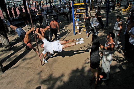 2008年8月24日,天津市河北區,公園里健身的人群。程子/攝