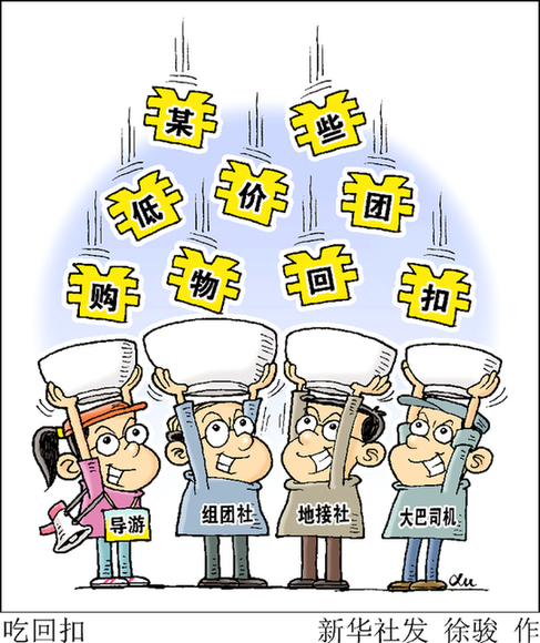 仟悅旅行社是“中樞”環(huán)節(jié),不僅要對(duì)接上游的組團(tuán)公司,還要安排導(dǎo)游,同時(shí)根據(jù)收取的團(tuán)費(fèi)和商家的回扣,設(shè)計(jì)線路和購(gòu)物店的數(shù)量。“按照行業(yè)慣例,商店必須給旅行社回扣,不給回扣就不帶旅游團(tuán)進(jìn)店?!鼻獝偮眯猩绶ǘù砣嗣衬痴f(shuō)。
