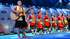 歡呼聲中,參賽隊員們揮舞中國國旗、海軍軍旗,向看臺上的觀眾致意。