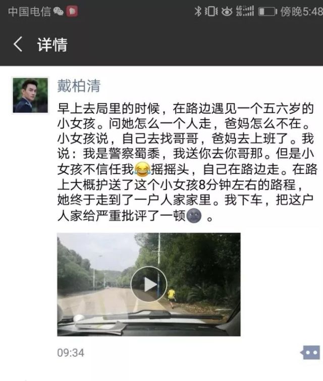 小女孩用沉默拒絕了他的幫助,他只好開著警車慢慢在孩子身后護(hù)送,暖心的8分鐘后,孩子終于進(jìn)了家門。