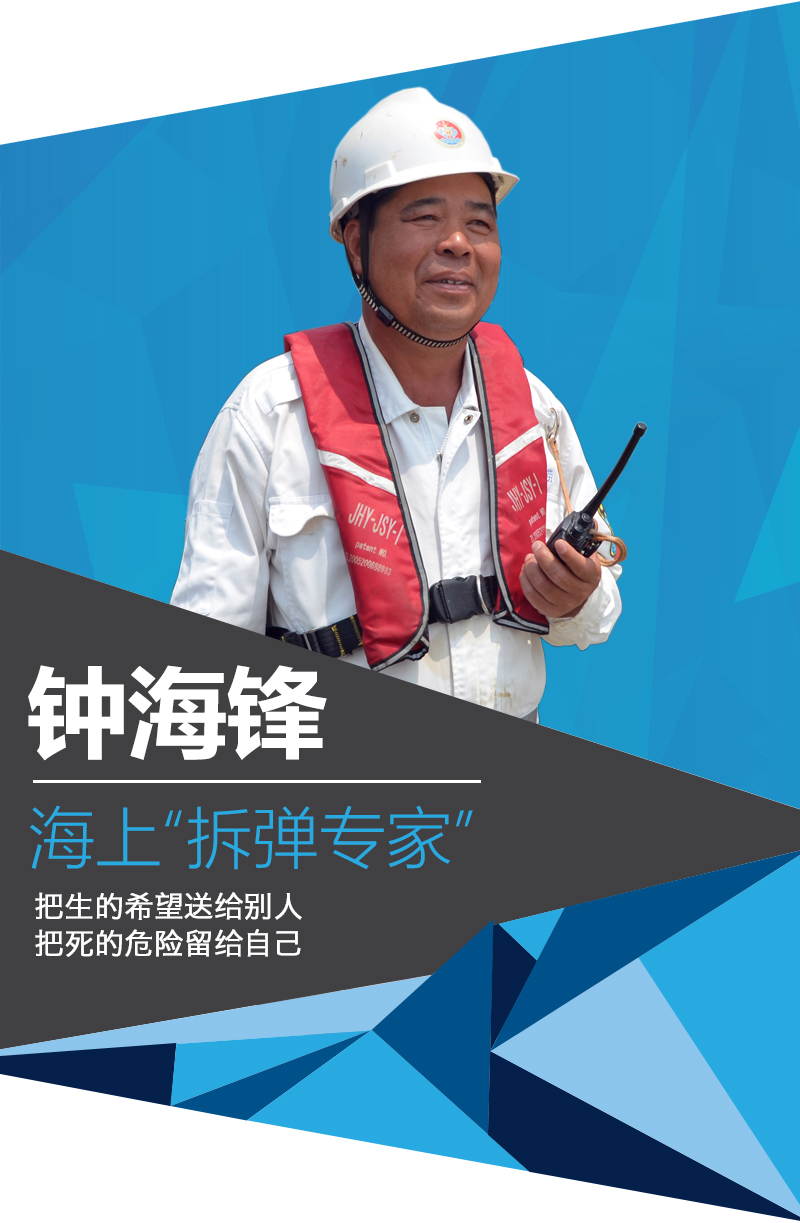 一次海上施工,需要潛水尋找放入的鋼管。隊(duì)員鐘佛軍在水下連續(xù)摸找了一個小時,仍舊一無所獲。通過水下電話,焦急的鐘佛軍跟岸上的鐘海鋒告知了情況。鐘海鋒立刻下水摸找鋼管,不到十分鐘,就成功找到目標(biāo)。