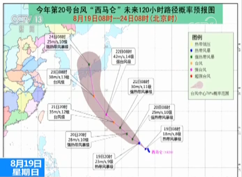 今年第20號臺風“西馬侖”也于昨晚在西北太平洋洋面生成,預計“西馬侖”將向西北方向移動,最強可達臺風級到強臺風級,未來“西馬侖”對我國海區無影響。