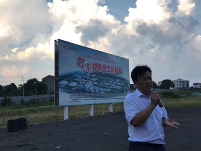 湖北三寧化工負(fù)責(zé)人介紹,該公司距長江最近距離只有五六十米,目前正在建設(shè)新廠房準(zhǔn)備搬遷。(孔華/攝)