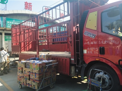 這幾天,在北京新發(fā)地市場,還出現(xiàn)了山東菜販從新發(fā)地進菜回運的情況。
