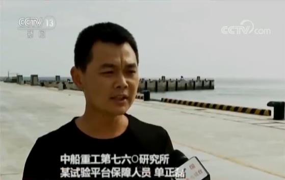 中船重工第七六O研究所某試驗平臺保障人員單正磊:“當(dāng)時左右(晃動)都達(dá)到了15度,往左15度往右15度,(晃動)特別厲害,人在上面都站不穩(wěn)了。”