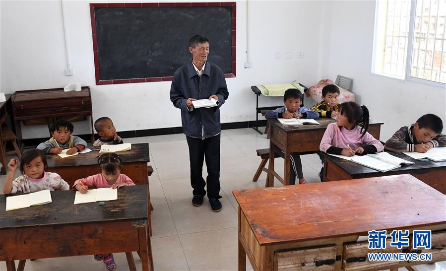 這是云南省祿勸彝族苗族自治縣撒營盤鎮(zhèn)三蒙村阿依羊小學(xué)的苗族教師王正祥的工作。