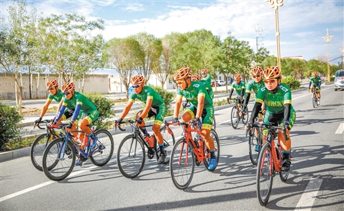 “絲路信使”國際自行車挑戰賽是目前亞洲里程最長的自行車賽,致力于依托賽事平臺,響應“一帶一路”倡議,通過文化體育活動,加強沿途交流溝通,為推動“一帶一路”建設在各地打下社會基礎和民意基礎。圖為車手到達終點。 鄭平貴攝
