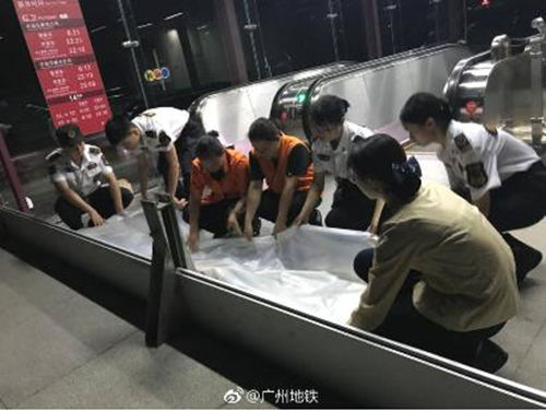 ▲臺(tái)風(fēng)來(lái)臨前,地鐵乘務(wù)員正在為地鐵站做好防汛工作。