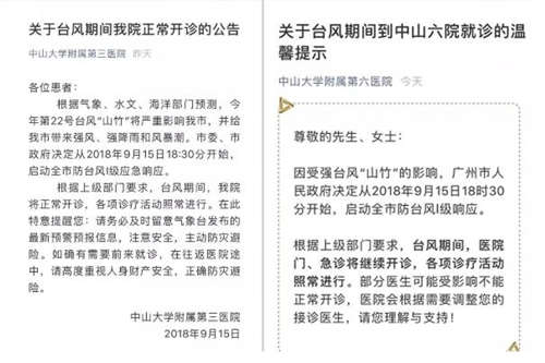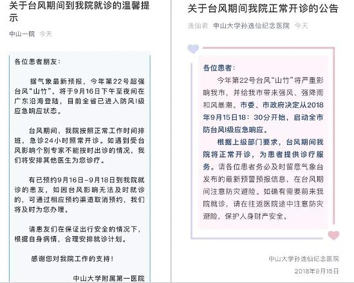 ▲各大醫(yī)院發(fā)布通知,臺(tái)風(fēng)期間正常上班、照常開(kāi)診。